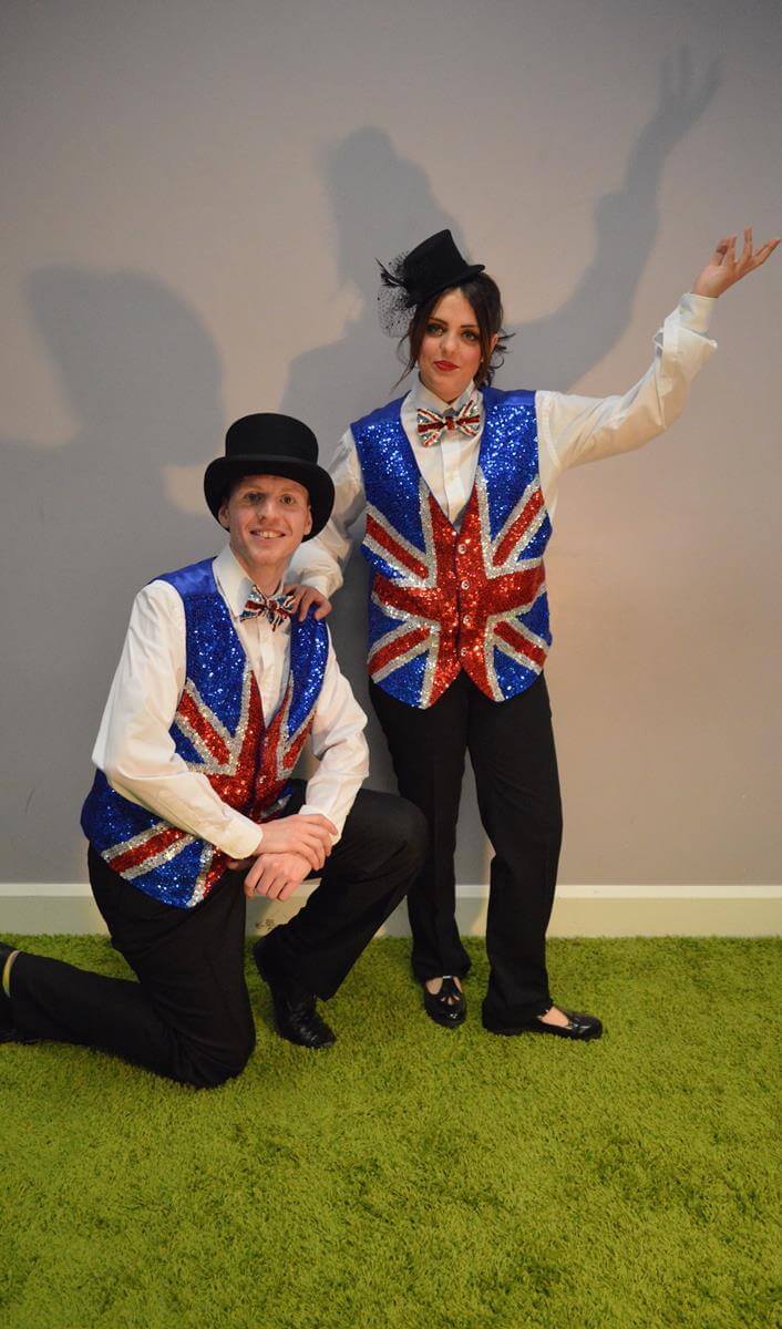 Ideal for promotional events - we've decked our characters out in smart Union Jack waistcoats to fit the theme!