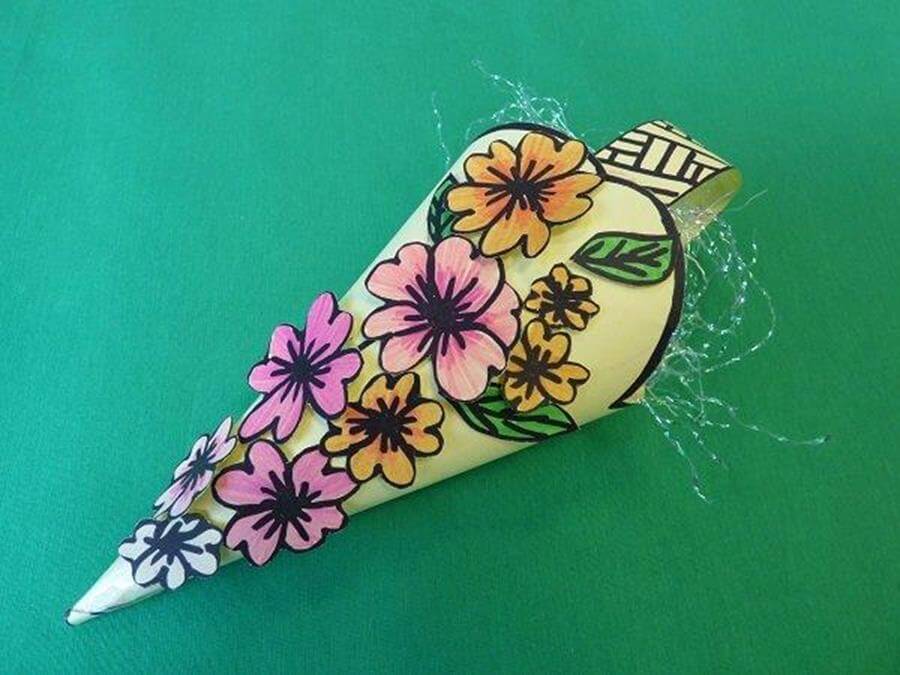 Create a cone basket and decorate it however you like - then fill it with chocolate eggs for a very happy Easter!
